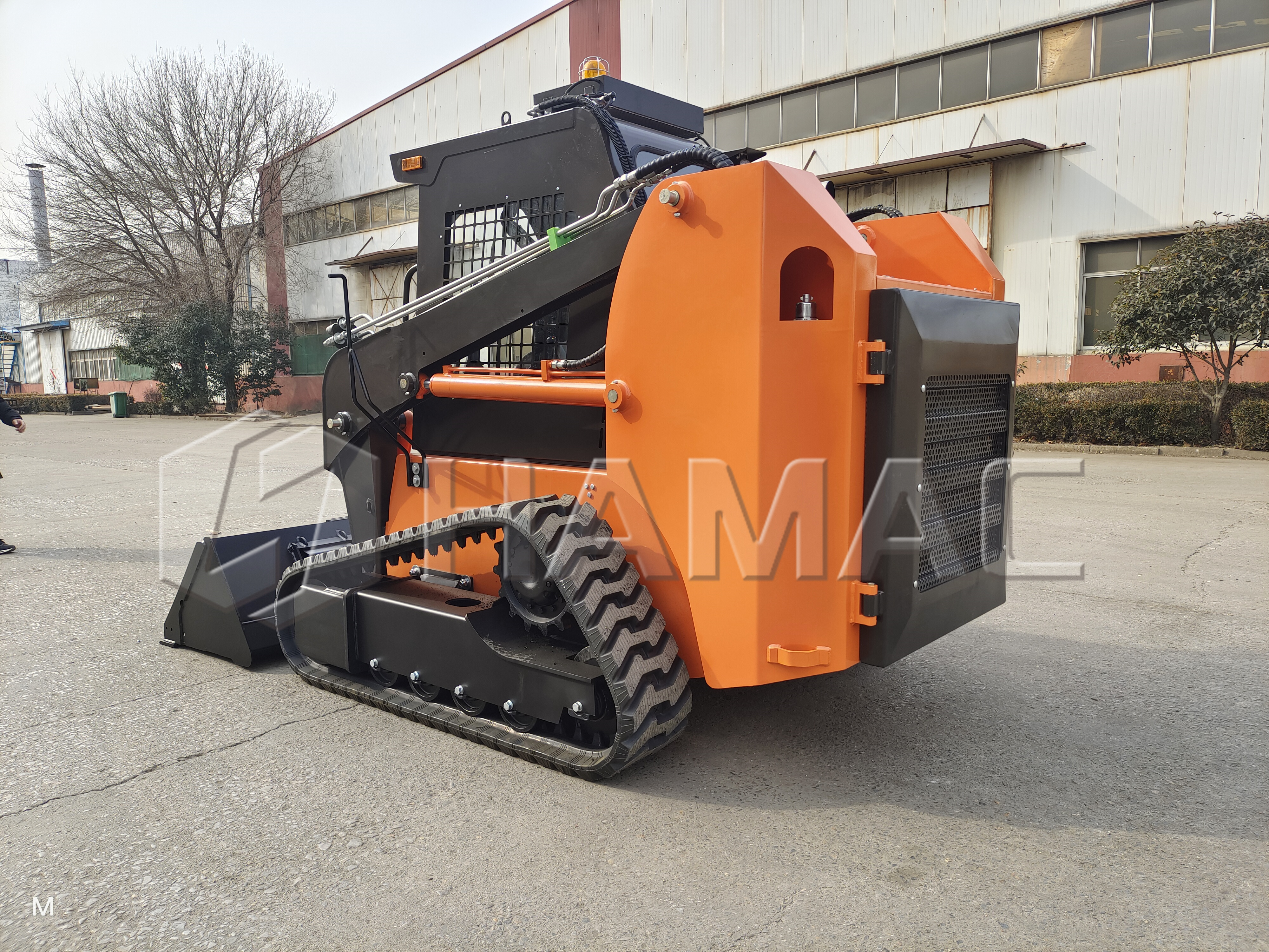 Equipped with advanced features such as hydrostatic transmission, this skid steer loader offers smooth operation and precise control, making it suitable for a broad range of applications, including but not limited to, land clearing, grading, and site preparation for construction projects. The robust design of the #11-3 Canopy rubber track bulldozer is complemented by a comprehensive suite of safety features, including a backup alarm, safety switches, and emergency stop buttons, ensuring the safety of operators and those around them.