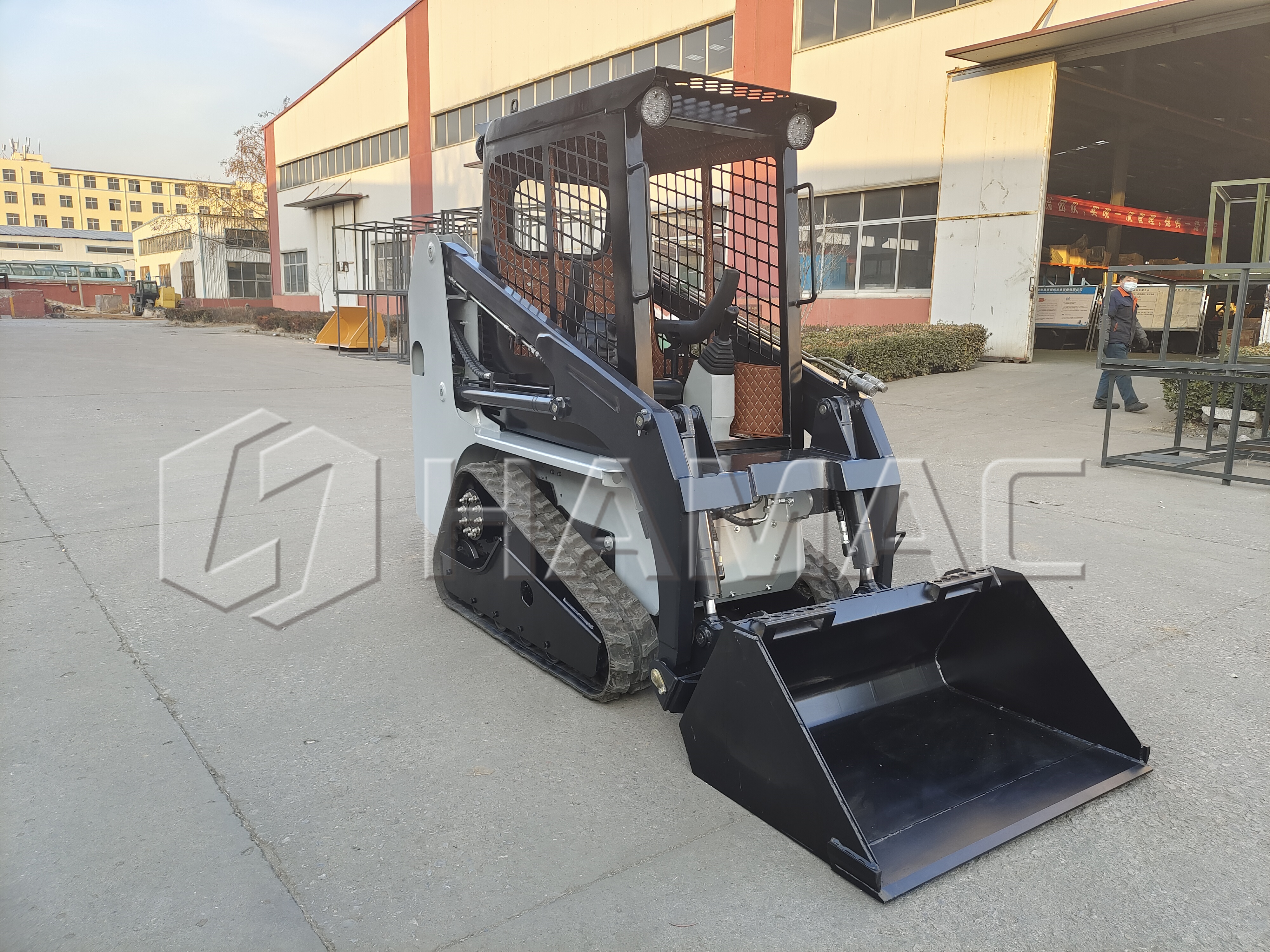 Equipped with a variety of digging buckets, the mini digger can efficiently handle tasks such as trenching, excavating, and backfilling. Its hydraulic system provides the necessary power and control to dig through tough soil and debris with ease, while the adjustable boom and swing mechanism allow for precise and efficient operation. Whether it's digging footings for a new building, laying utility lines, or preparing garden beds, this mini digger is a valuable tool for any skid steer loader operator.