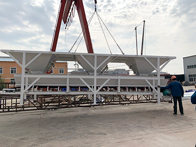 This is a concrete batching plant with capacity 180 cubic meters per hour. It is specially designed because of the low temperature in Russia. In order to solve this problem, this complete plant was equipped with heating system. We add the hot water pi...